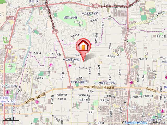 京福電気鉄道北野線「北野白梅町」駅 徒歩14分 京都市営烏丸線「今出川」駅 徒歩21分 山陰本線「二条」駅 徒歩27分 |