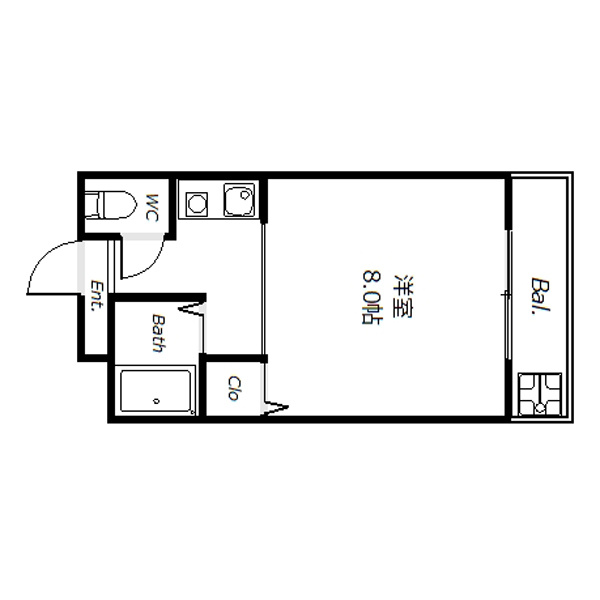 洋室 8.0帖 1室 / K 1室 / |
