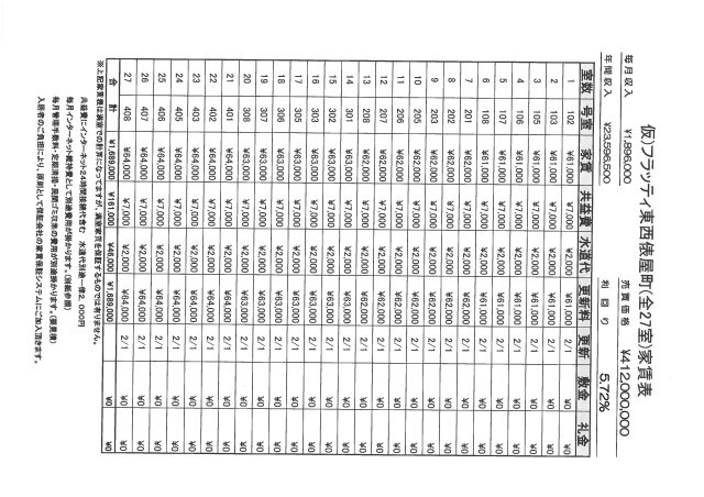 また、予定賃料収入が確実に得られる事を保証するものではありません。