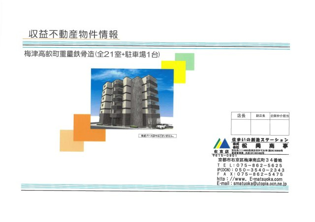 徒歩16分 京福電気鉄道嵐山本線 「蚕ノ社」駅 徒歩20分 京福電気鉄道嵐山本線 「太秦広隆寺」駅 徒歩21分 |